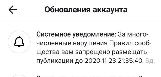 У меня проблема. Мне в тик токе был дан бан на размещение публикаций до 23 ноября 2020 года до времени 21:35:40, а сейчас уже время 22:00 и я так же не могу выложить видео, пожалуйста как мне с этим быть? Удалять акк и создавать новый???