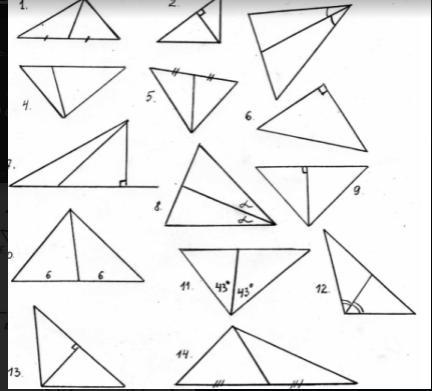 медиана делит противолежащую сторону на 2 равные части,они отмечены одинаковыми штрихами на рис 1) 5) и 14),а на рис.10 написано,что оба отрезка равны 6.