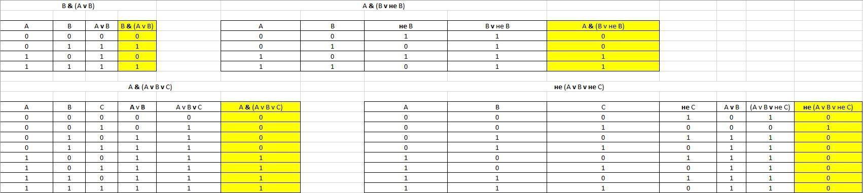 3) A & (A vВv C);
