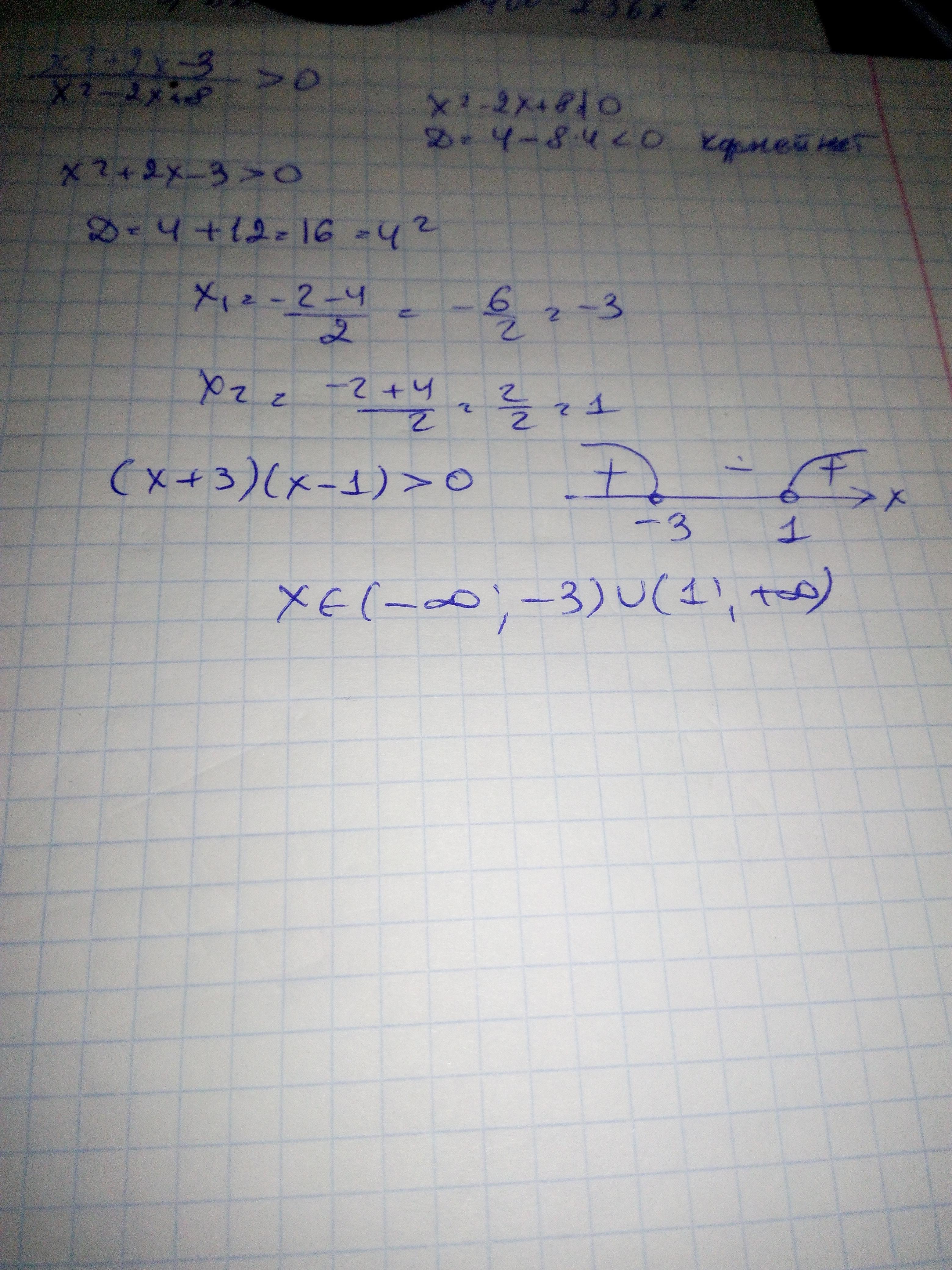 x^2+2x-3 черта дроби x^2-2x+8>0
