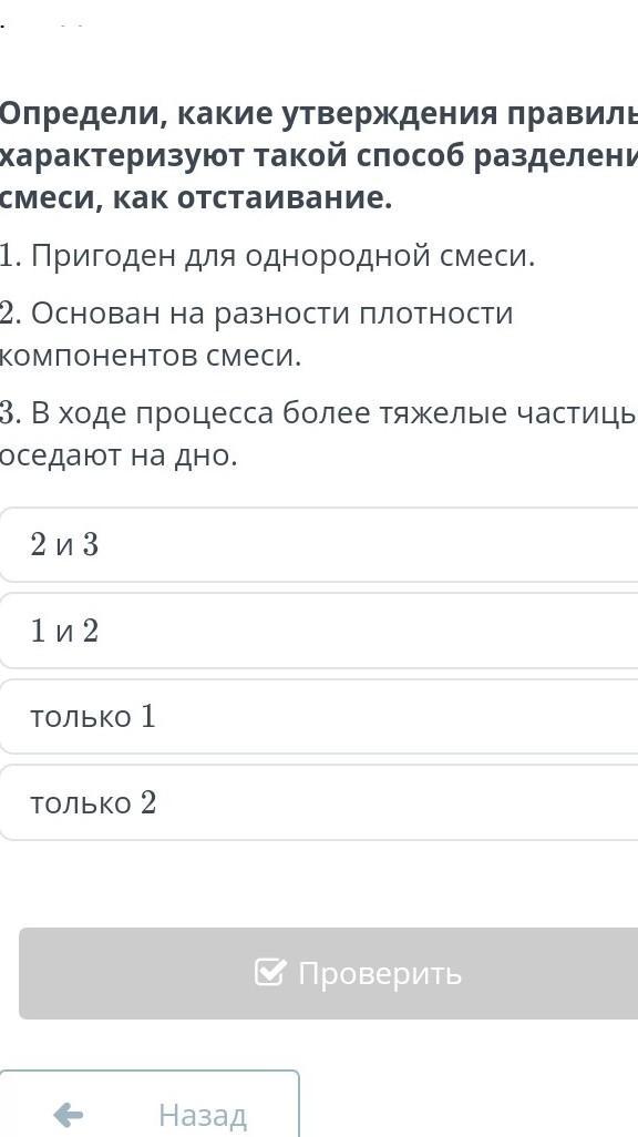 .Определи,какие утверждение правильно характеризует такой способ разделения смесеи,как отстаивание