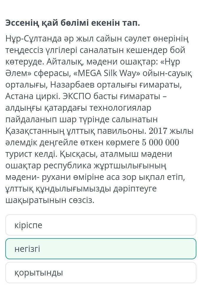 Эссенің қай бөлімі екенін тап.