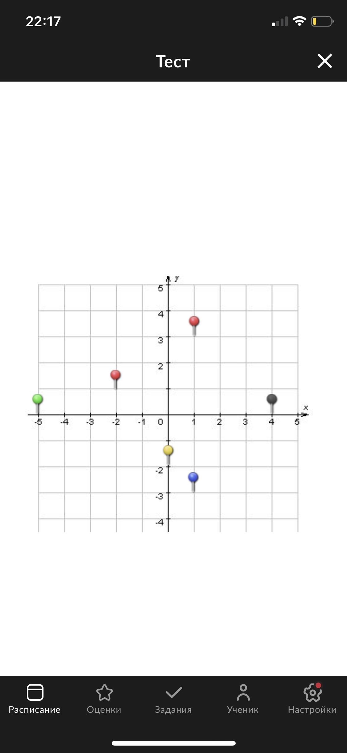 Ответ: зелёная (-5; 0,8)