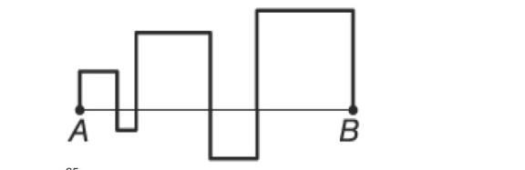Отрезок АВ длины 10 см пересечен ломаной линией, как показано на рисунке. При этом получилось пять квадратов. Чему равна длина ломаной?