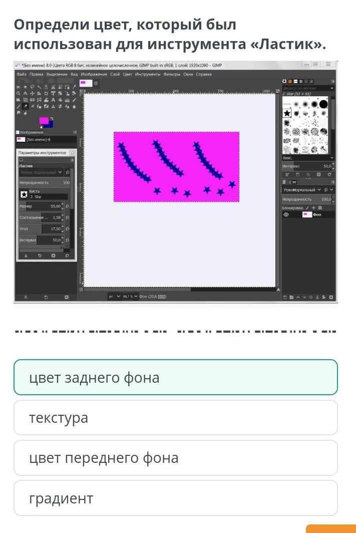 Цвет который был использован для инструмента "Ластик" это цвет заднего фона.
