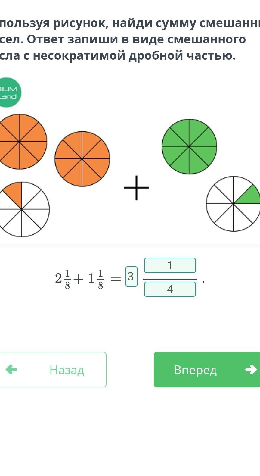 Используя рисунок, найди сумму смешанных чисел. Ответ запиши в виде смешанного числа с несократимой дробной частью.