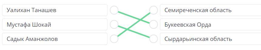 Соотнеси избранных членов Алаш-орды и области, представителями которых они были.