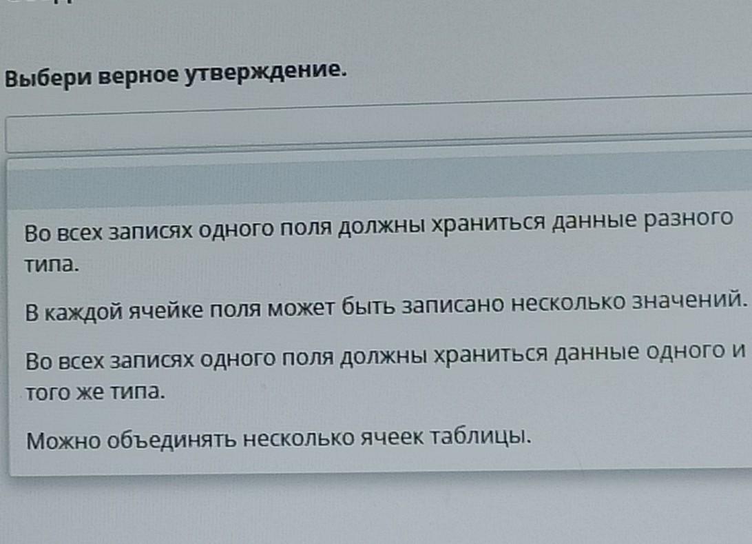 Во всех записях одного поля должны храниться данные одного и того же типа
