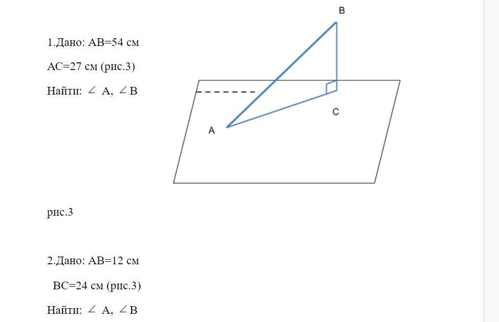 умова повинна бути така : ВС = 12 см , АВ = 24 см ; ∠ А -? ∠ В - ?