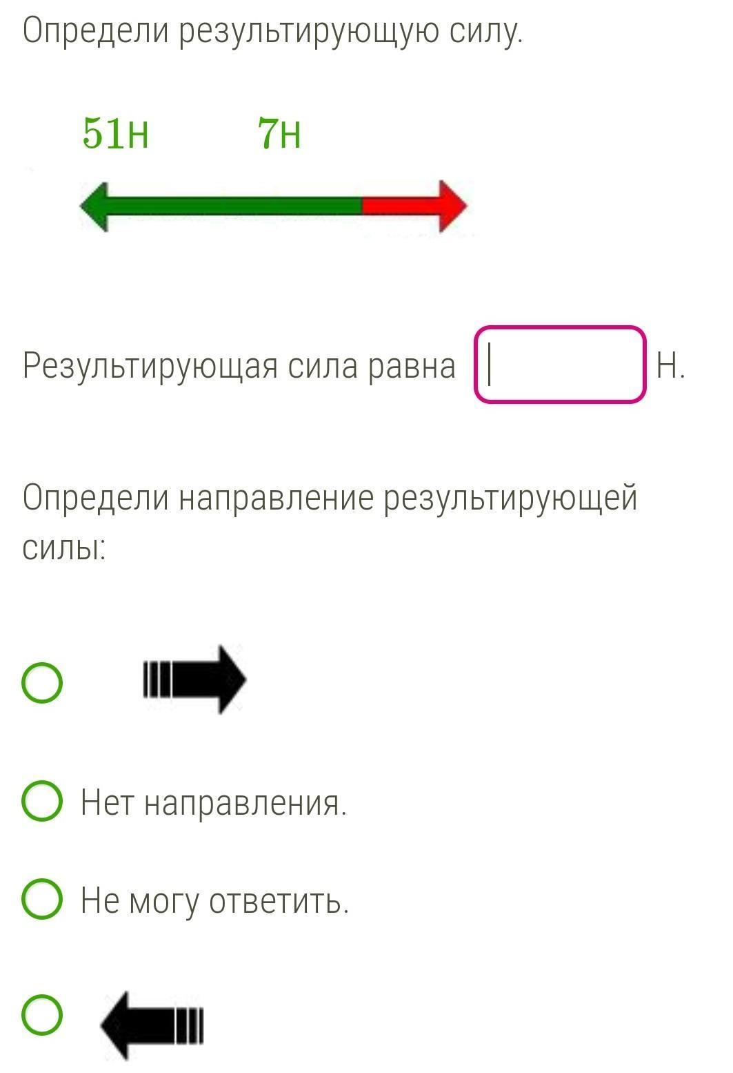 Обрати внимание. Если силы действуют в противоположных направлениях, результирующая сила равна разности сил от большой силы отнимают меньшую, результирующая сила действуют в направлении большой силы.