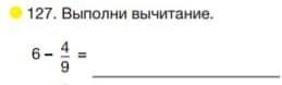 6 - 4/9 = 6/1 - 4/9 = 6*9/1*9 - 4*1/9*1 = 54/9 - 4/9 = 54-4/9 = 50/9 = 5 5/9
