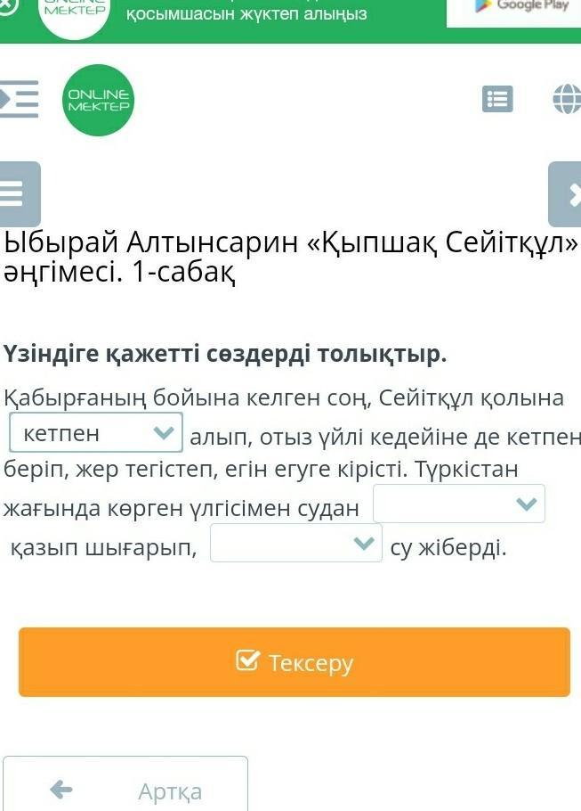 Үзіндіге қажетті сөздерді толықтыр.