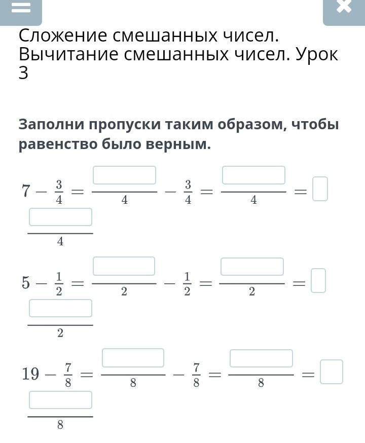 Сложение смешанных чисел. Вычитание смешанных чисел. Урок 3