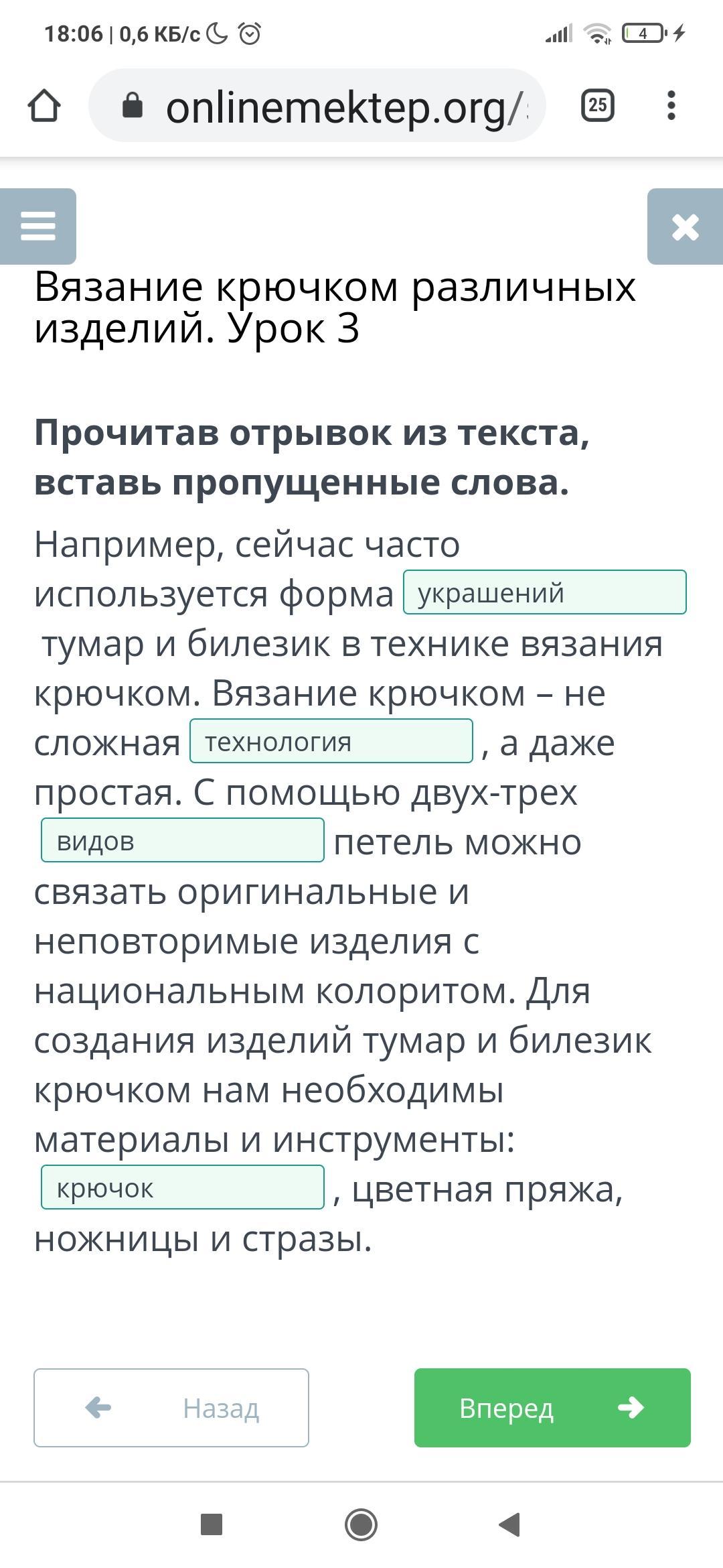 Прочитав отрывок из текста, вставь пропущенные слова.