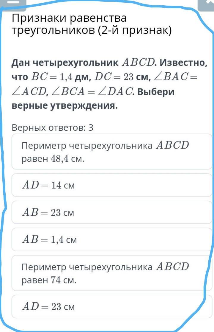 Те три, что в фигурной скобке AD=14 cm, AB=23cm и P=74cm