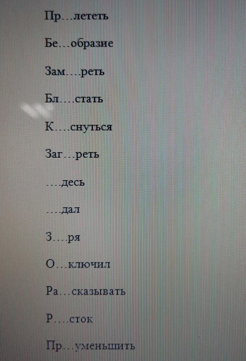 Прилететь, безобразие, замереть, блистать, коснуться, загореть, здесь, сдал, заря, отключил, рассказывать, росток, приуменьшить.