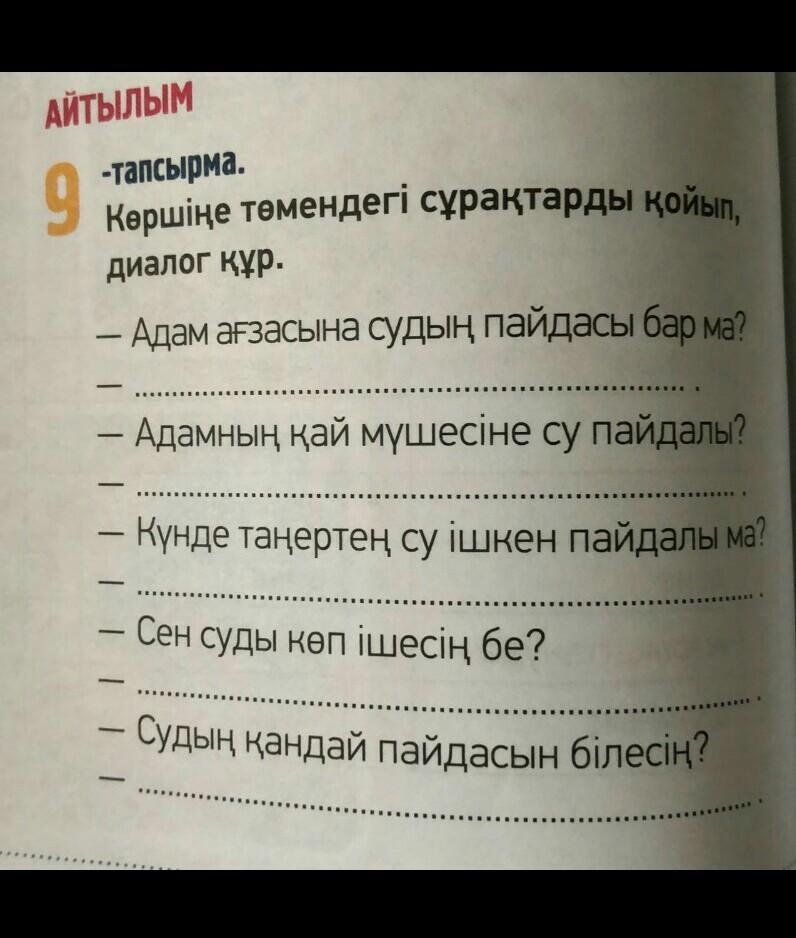 Ответ:1.Су – тіршілік нәрі. Ғалымдардың айтуынша, адам организмі 65 пайыз судан тұрады екен. Судың адамның денсаулығына тигізетін пайдасы мен маңызы өте үлкен. Күніне 2 литр су ішу керек деген кеңестерді жиі естиміз, бірақ оның зиянды әсері де бар