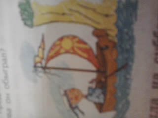 2. Лодка уткнулась носом в берег. Мальчик нарисовал лодку с лицом, нос которого уткнулся в берег.