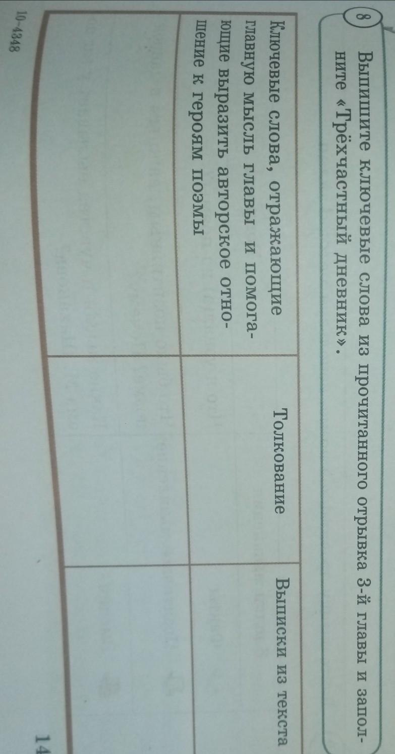 выпишите ключевые слова из прочитанного отрывка 3й главы и заполните трехчастный дневник