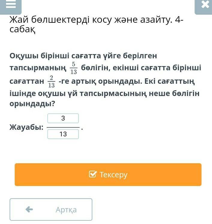 5/13+2/13=7/13 это екінші сағат