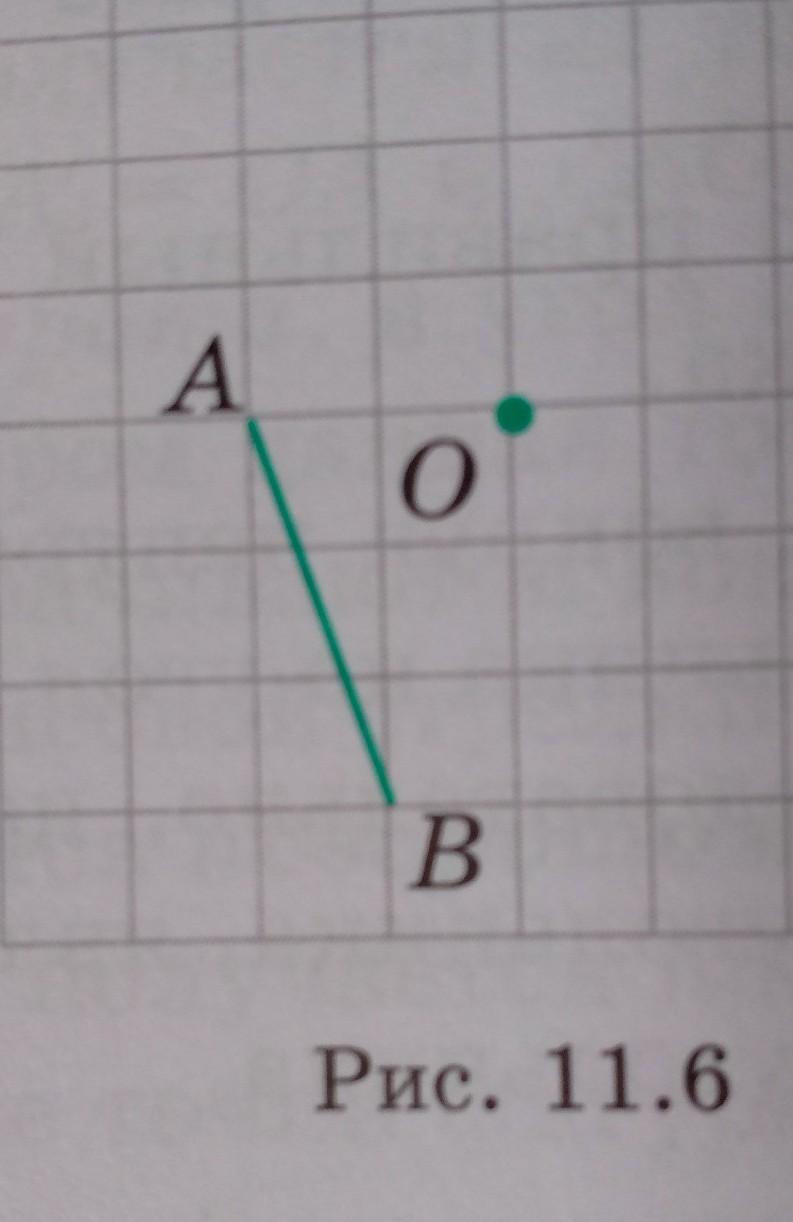 изобразите отрезок А'В' , полученный из отрезка АВ поворотом вокруг очки О на угол 90° по часовой стрелке (рис. 11.6)