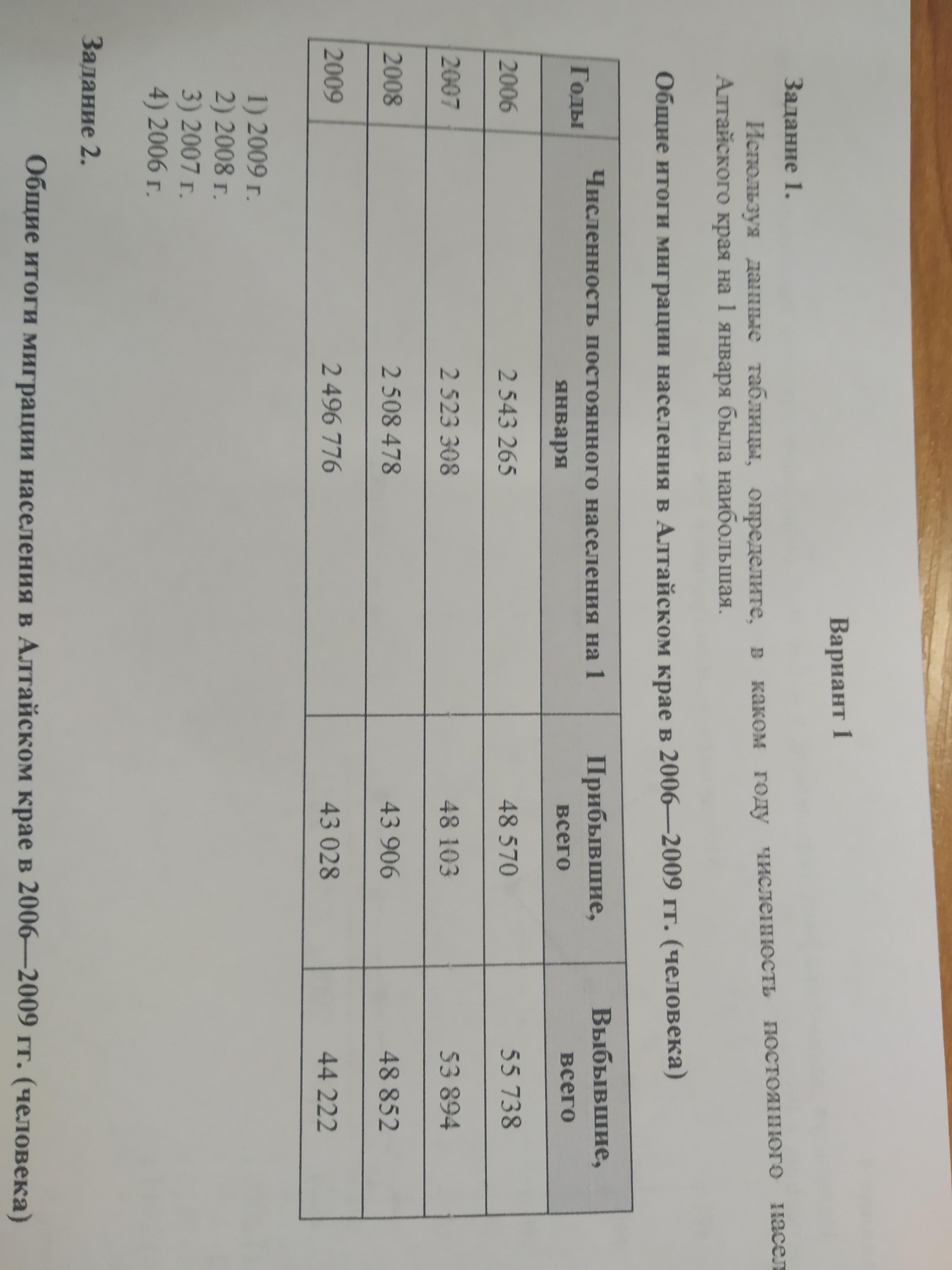 Использую данные таблицы определите в каком году численность постоянного населения Алтайского края на 1 января была наибольшая