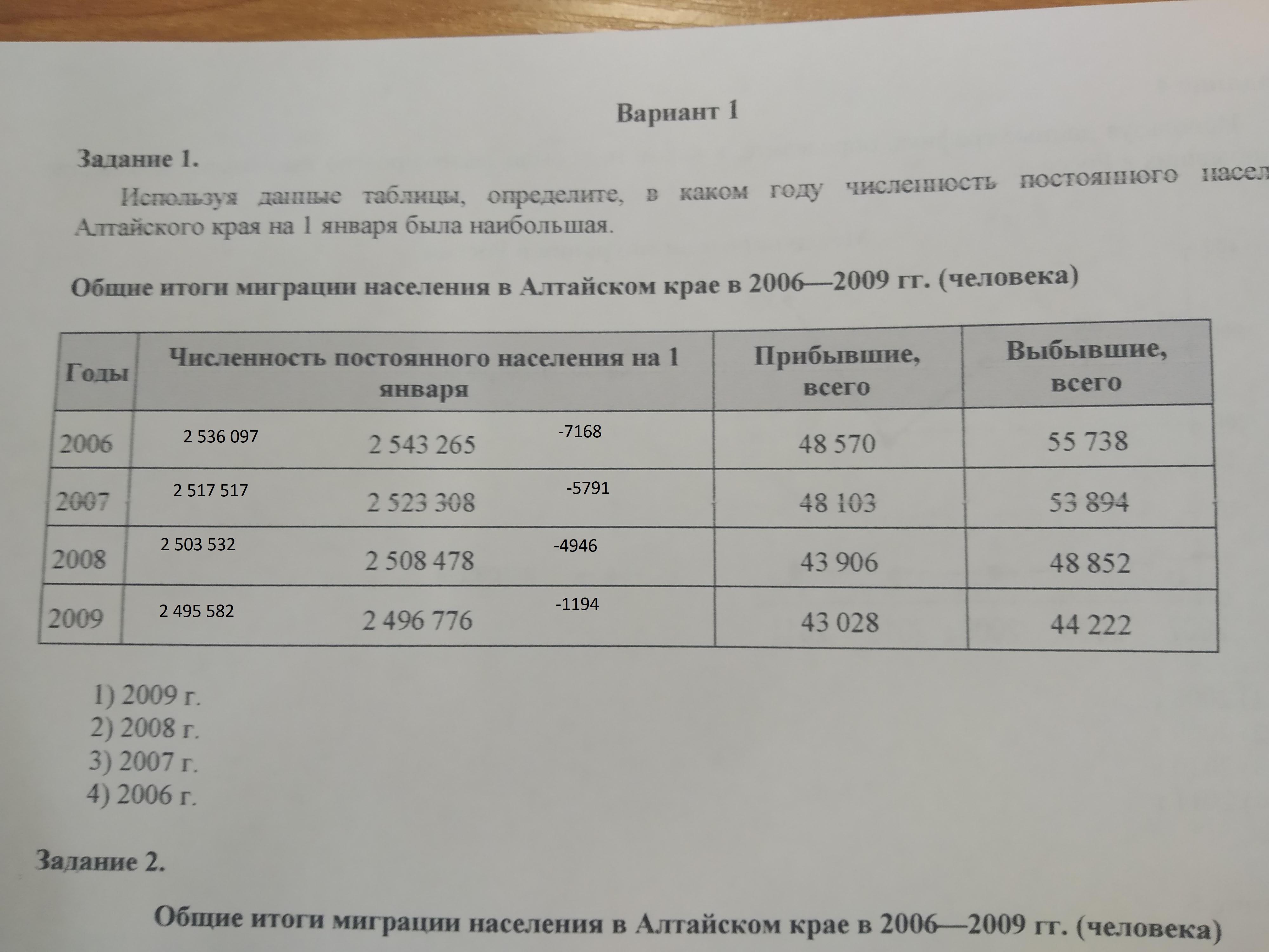 Численность постоянного населения Алтайского края на 1 января была наибольшая в 2006 году, поскольку надо к численности постоянного населения прибавить прибывших и вычесть выбывших.