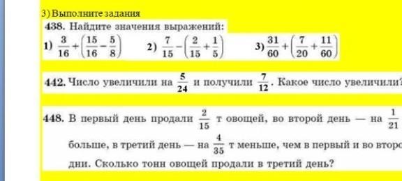 438. 1) 1/2, 2) 2/15, 3) 1 целая 1/20
