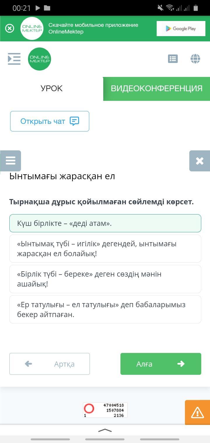 Ынтымағы жарасқан ел Тырнақша дұрыс қойылмаған сөйлемді көрсет. «Ер татулығы – ел татулығы» деп бабаларымыз бекер айтпаған. «Бірлік түбі – береке» деген сөздің мәнін ашайық! «Ынтымақ түбі – игілік» дегендей, ынтымағы жарасқан ел болайық! Күш бірлікте – «деді атам».