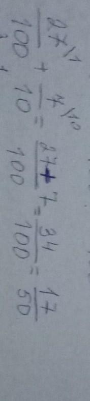2)27/100+7/10 = 27/100+70/100=97/100;