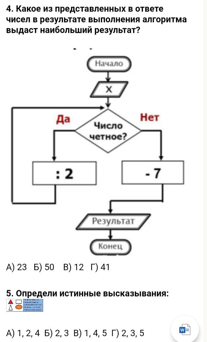 Какое из представленных в ответе чисел в результате выполнения алгоритма выдаст наибольший результат?