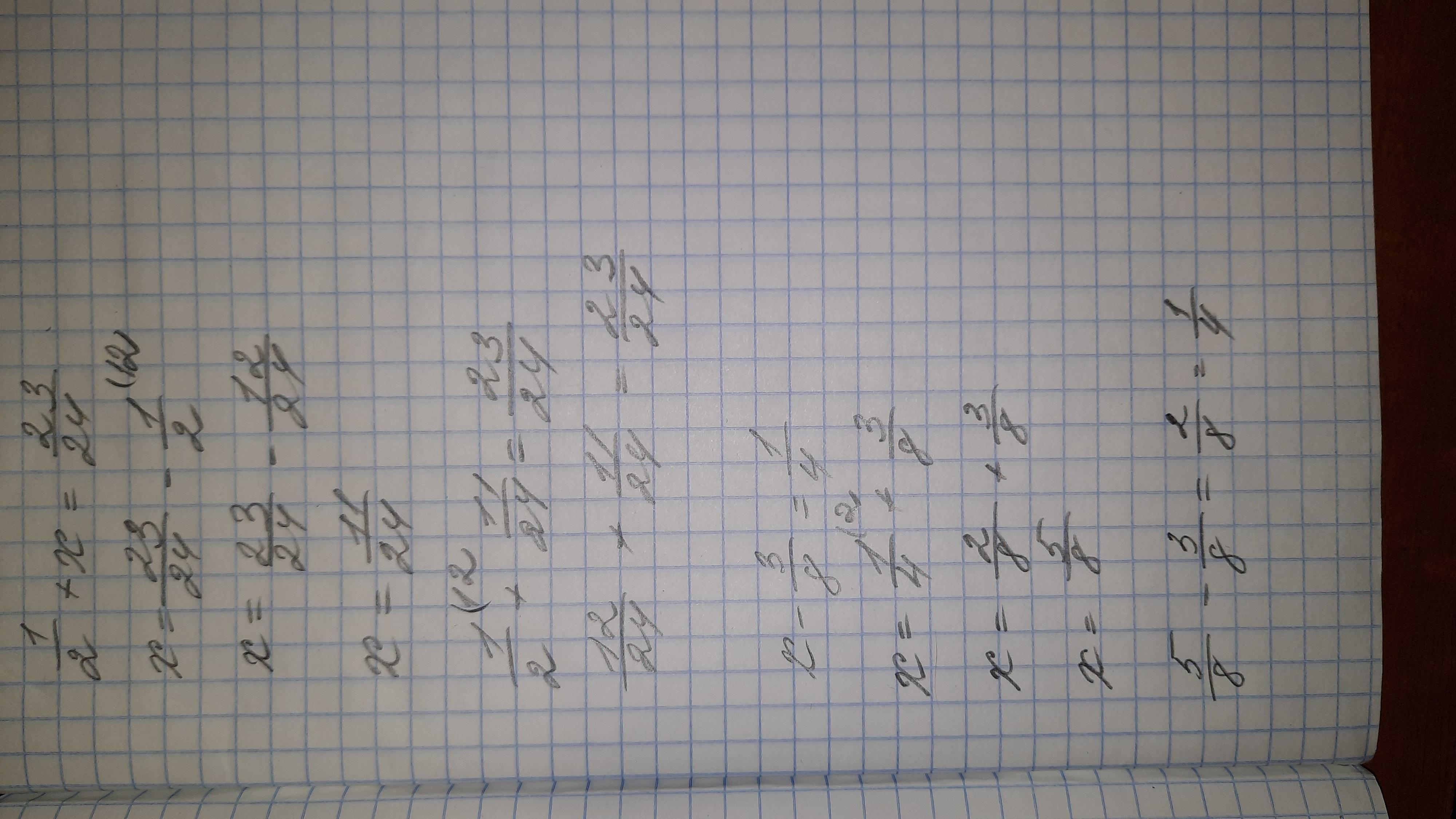 Решите уравнение 3) 1/2+х=23/24 4) х-3/8 =1/4.