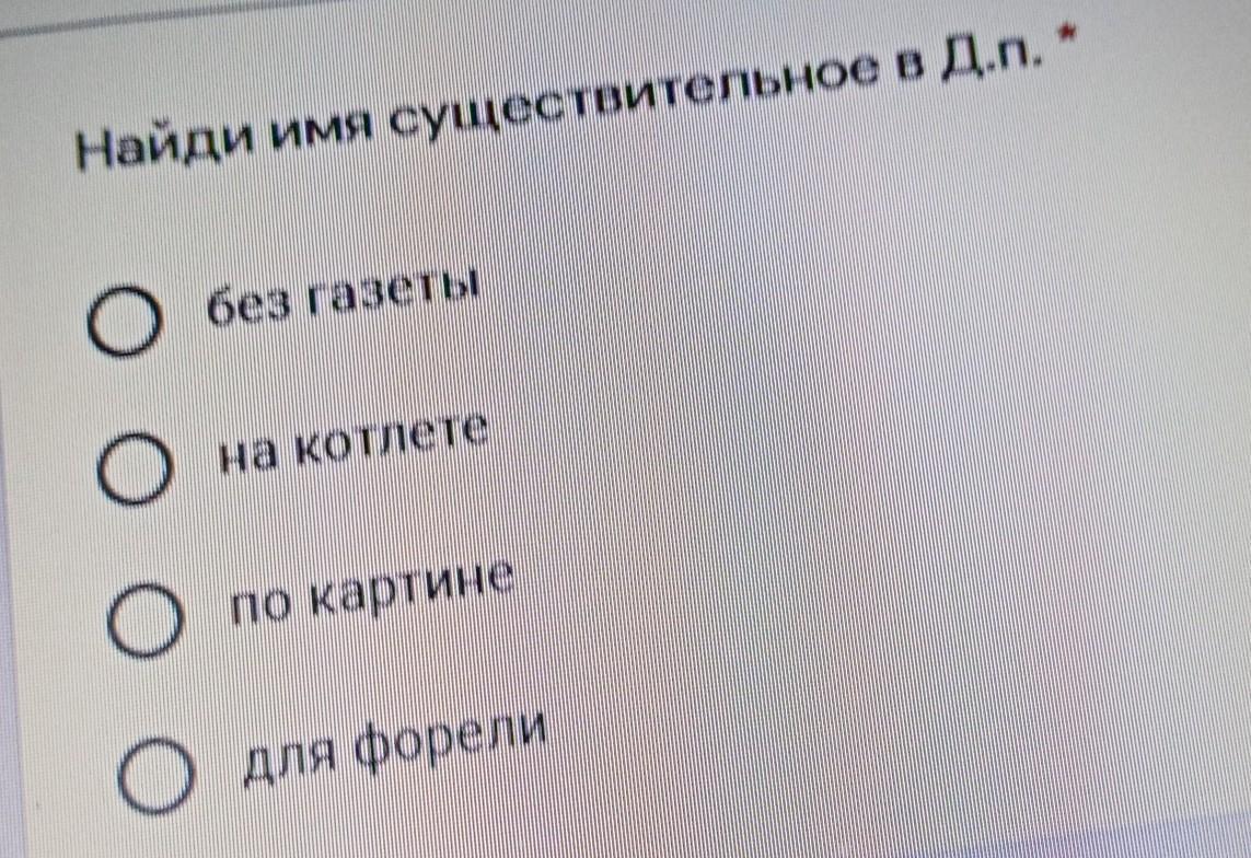 Без газеты (р.п.), на котлете (п.п.), для форели (р.п.).