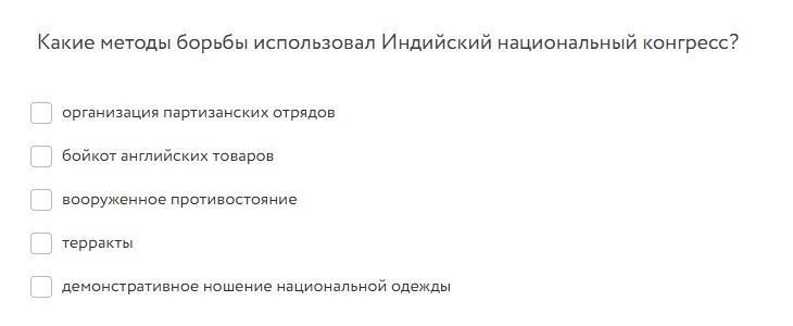Какие методы борьбы использовал индийский национальный конгресс?