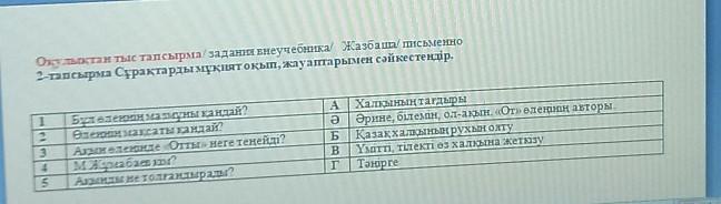 2-тапсырма Cұрақтарды мұқият оқып, жауаптарымен сәйкестендір.