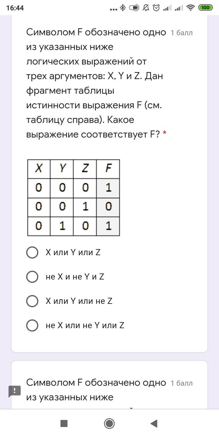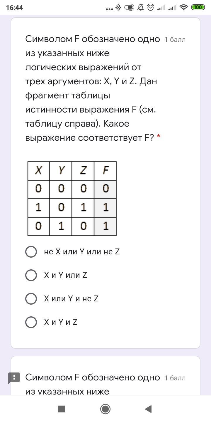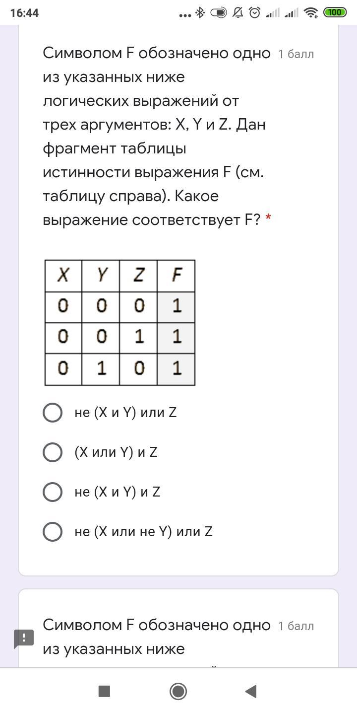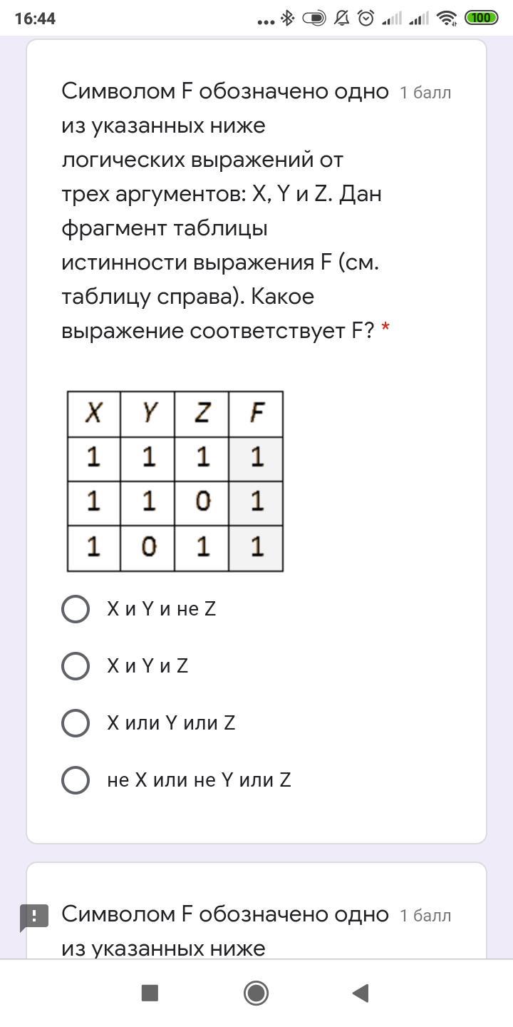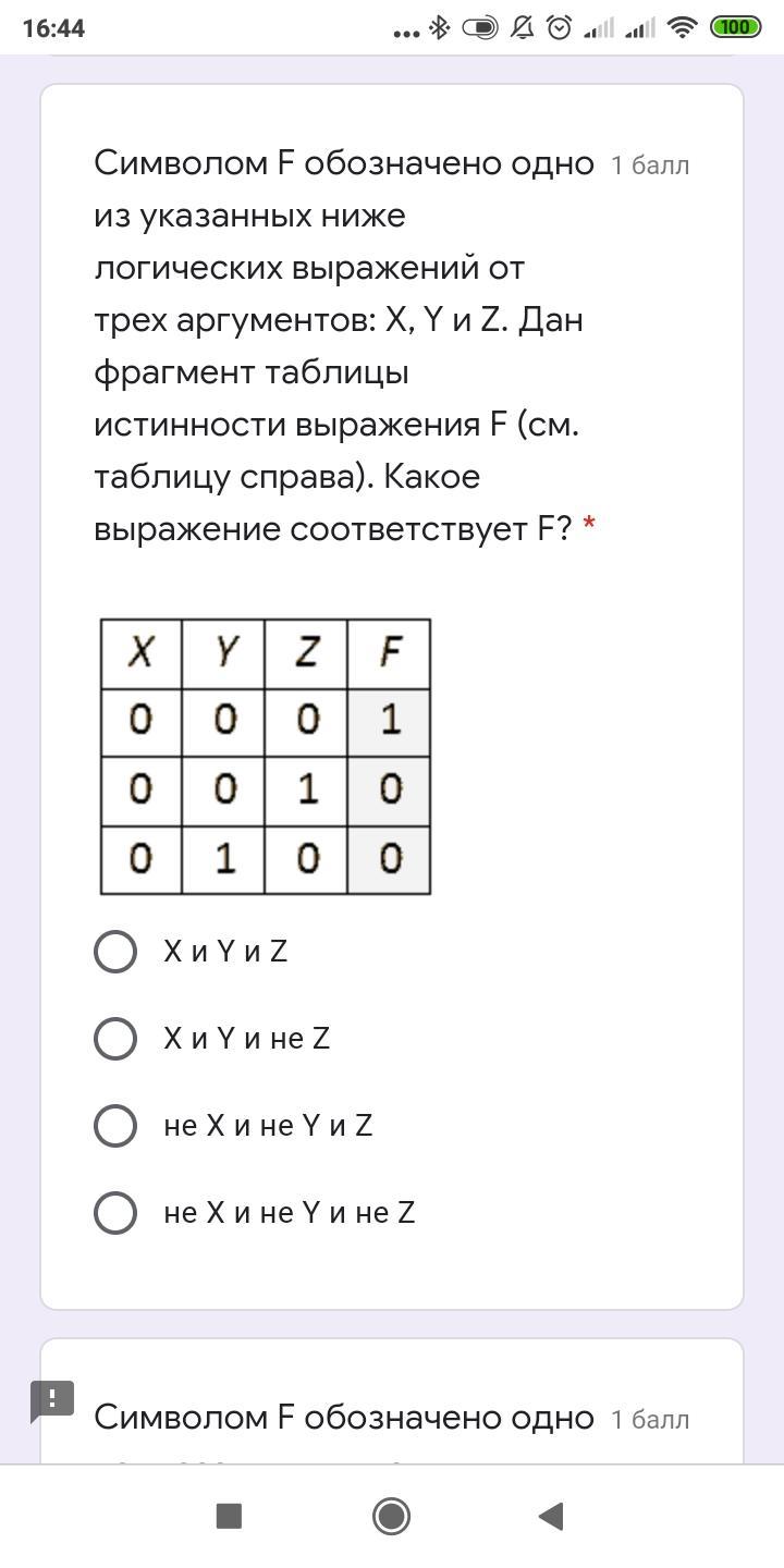 1)Ответ:X или Y или не Z;2)X и Y и Z