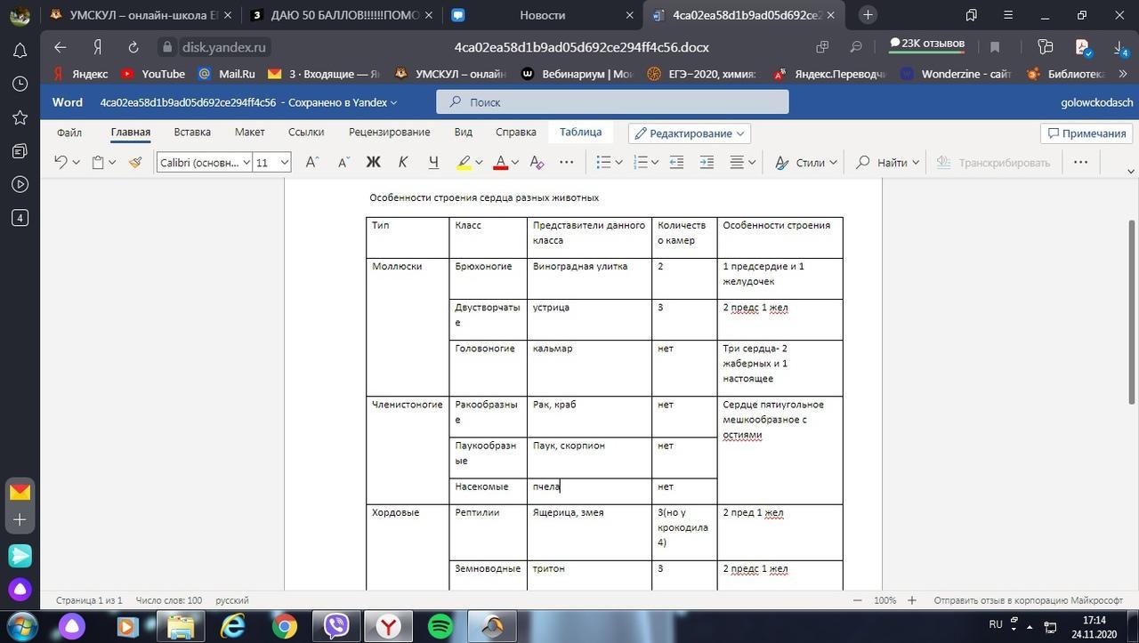 ДАЮ 50 БАЛЛОВ!!!!!!ПОМОГИТЕ ПОЖАЛУЙСТА ПО БИОЛОГИИ 7 КЛАСС. Заполни таблицу особенности строения сердца разных животных. Таблица в файле умоляюююююю.