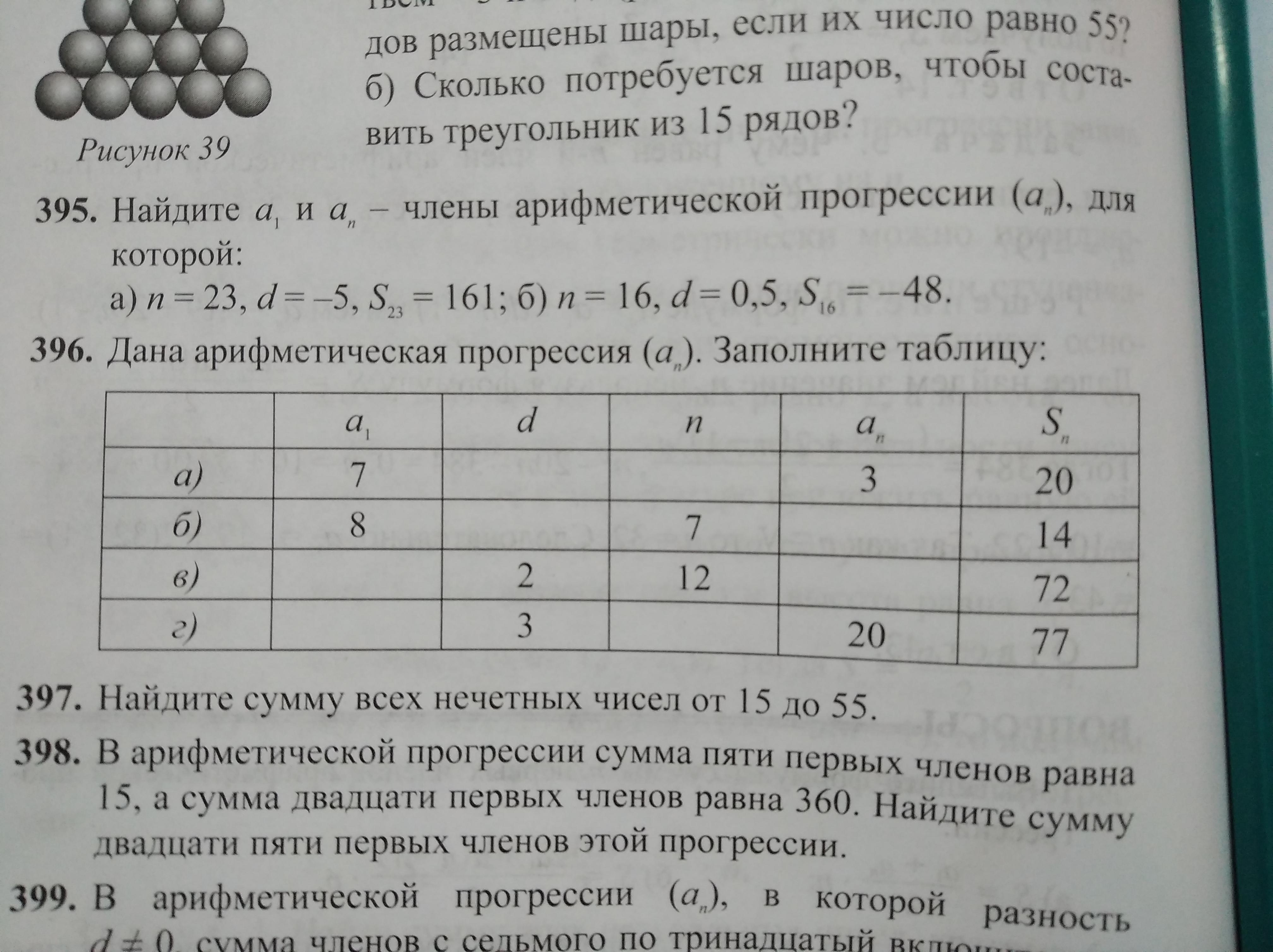 а) a₁=7; aₙ=3; Sₙ=20; d-?; n-?