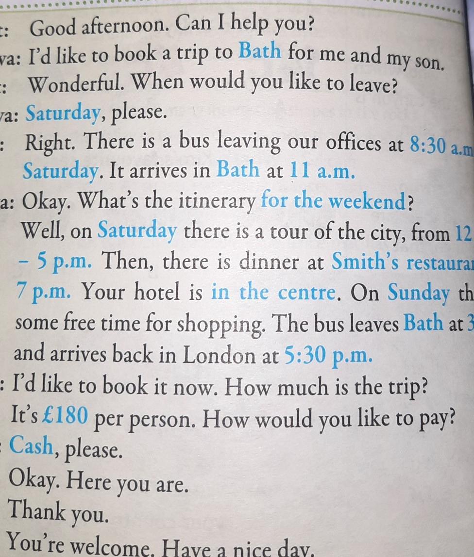 to buy this holiday. - The cost is £180. - My pleasure. - Enjoy your day.