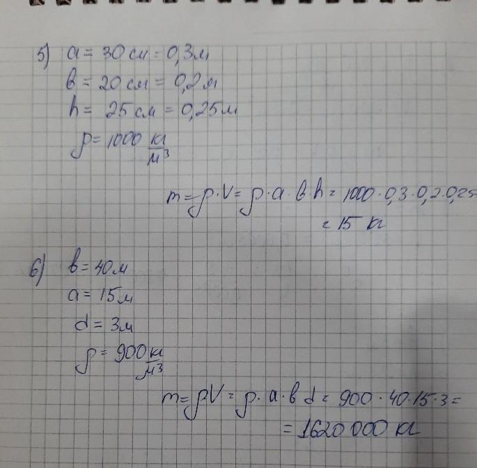 5. В аквариум длиной 30 см и шириной 20 см налита вода до высоты 25 см. Определите массу воды в аквариуме.