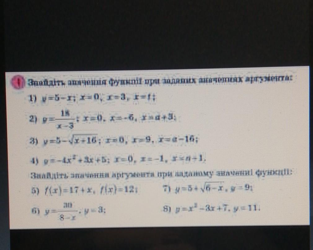 Знайдіть значення аргумента при заданому значенні функції: