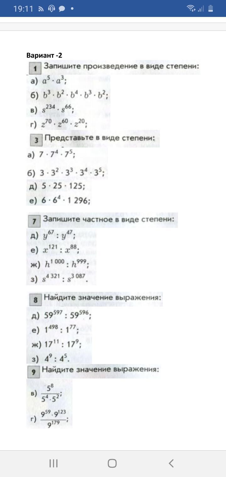 Короче, легко объясню если идёт умножение то степени складываются. А если деление , то степени вычитаться должны. А если написано где 9 задание под В)там короче степени сверху остаётся а внизу так же складываются , а под Г)сверху складываются, внизу остаются