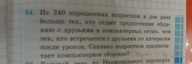 в условии тех, кто за компьютером в 2 раза больше, соответственно 80*2=160