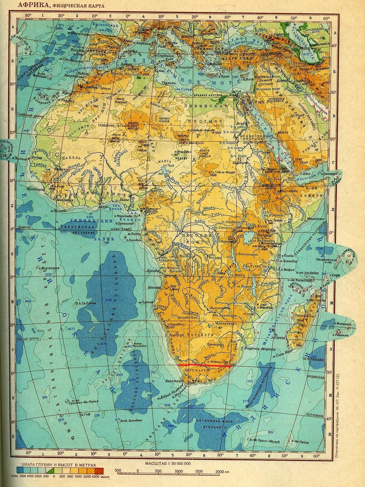 Вычисли с помощью физической карты протяжённость Африки с запада на восток по 30° ю. ш.