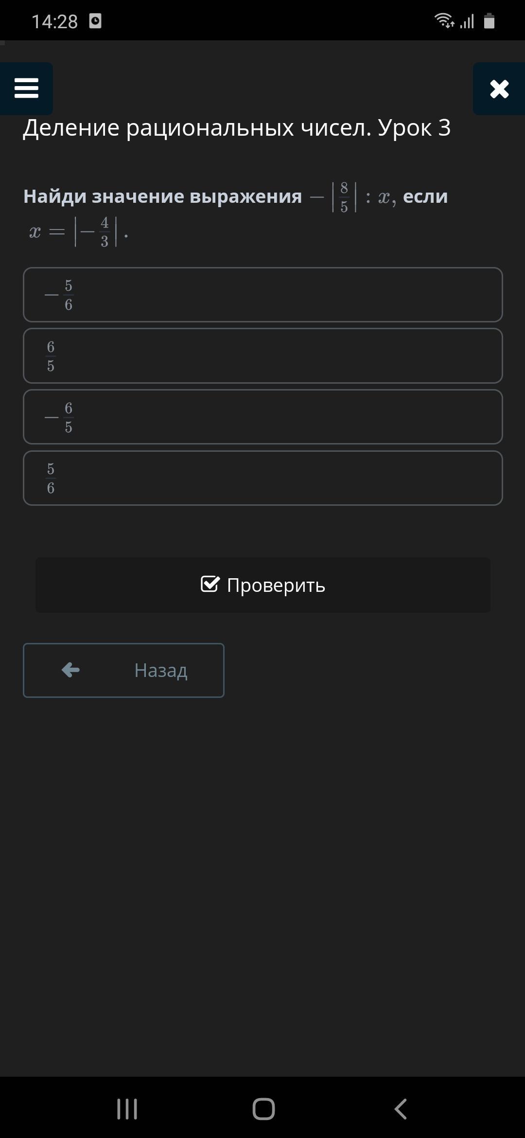 -8/5 : 4/3 = -8/5 * 3/4 = -2/5 *3 = -6/5