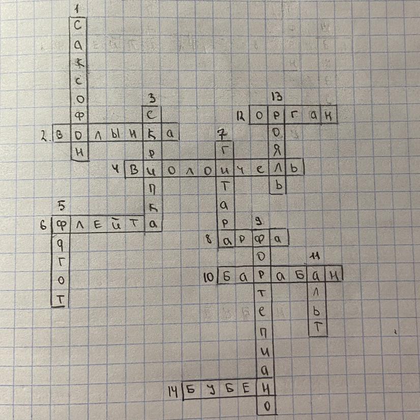 Сделайте кроссворд тема: музыкальные инструменты, 7 по горизонтали, 7 по вертикали. Срочно нужно, нам за это 50 балов.