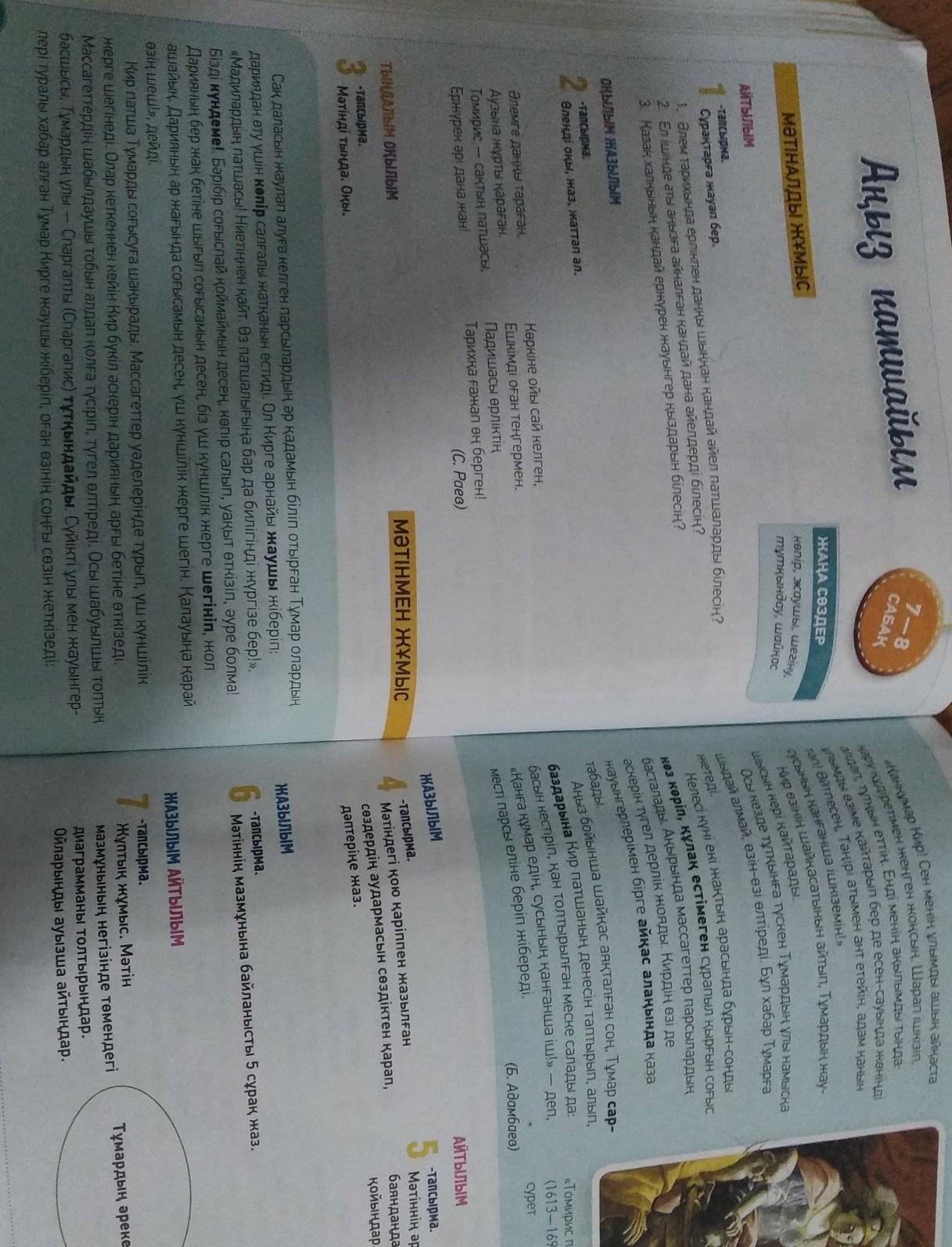 1)Парсылар қандай тұзаққа түсті? 2)Парсыларға кім тұтқынға түсті?3)Томиристің ұлы қалай аталды?4)Томирис Кирден не талап етті?5)Томирис қалай кек алды ?