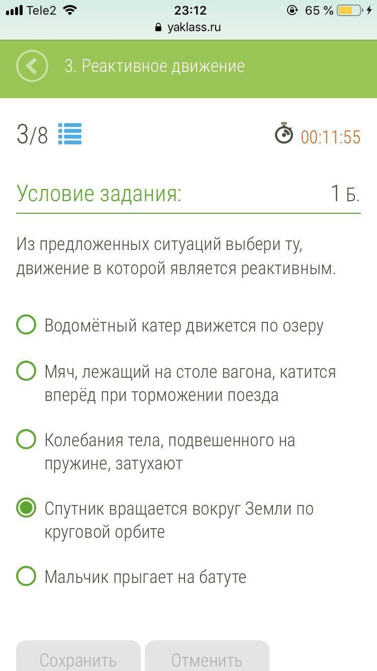 Подходит первая ситуация, так как движение происходит засчёт "отбрасывания" воды.