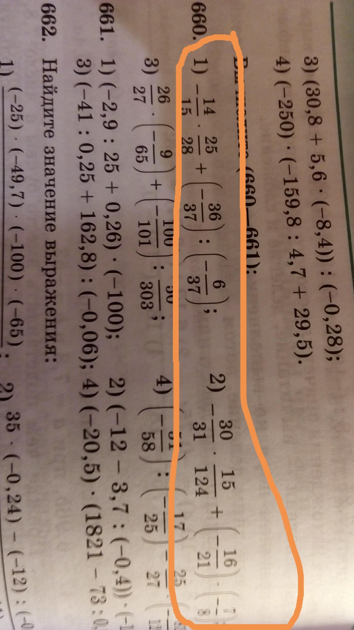 вот -14/15*25/28=-25/30. (-36/37):(-6/37)=6/1 -25/30+6/1=-121/30