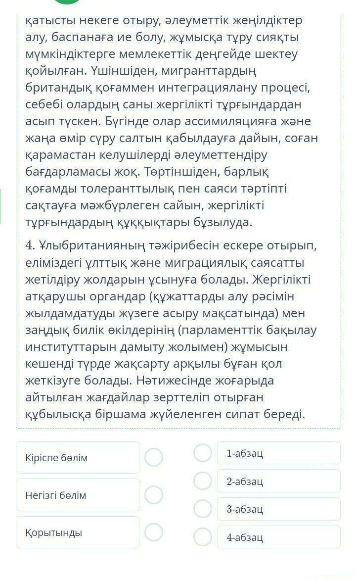 кіріспе бөлім 1-абзац негізгі бөлім 2-3-абзац қортынды 4-абзац